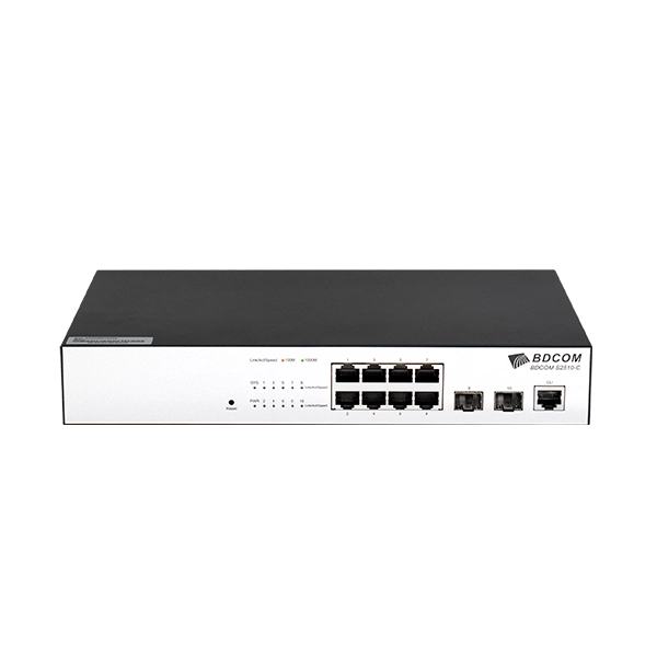 - L3-lite Managed Switch (single AC-220V power supply; fanless, 1U, standard 19-inch rack-mounted installation)